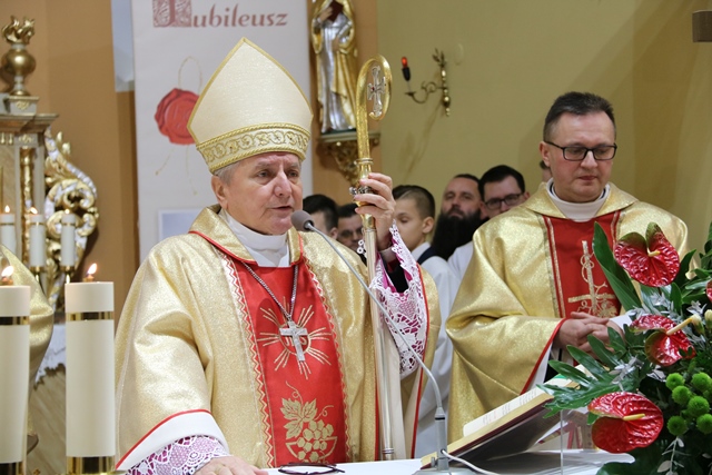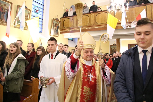 Zachęcał wiernych, aby dbali o swoje wnętrze. - Wiara jest łaską i darem, ale można ją stracić. Kto nie będzie pielęgnował wiary w swoim sercu, nie będzie modlił się, to prędzej czy później straci wiarę. Ile potrzeba wysiłku, żeby zadbać o wnętrze. Wielu ludzi przeżywa depresję, bo nie dbają o wnętrze, o samodyscyplinę. Proszę was dbajcie o swoje wnętrze, o stan ducha, tak jak dbacie o tę piękną świątynię. W tym bardzo pomocne są sakramenty święte, bo błądzić jest rzeczą ludzką, ale Miłosierdzie Boże jest bez granic – przekonywał hierarcha.