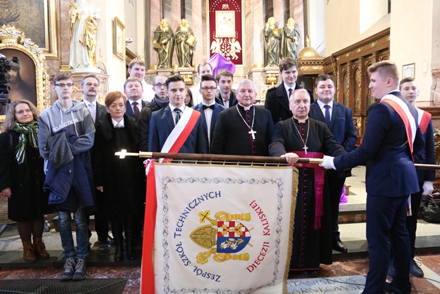 Podczas Mszy św. odbyło się uroczyste nadanie imienia św. Józefa Zespołowi Szkół Technicznych Diecezji Kaliskiej działającemu od września 2017 r. Poświęcono także sztandar szkoły, który ręcznie został wyhaftowany przez Siostry Wspólnej Pracy w Kaliszu a zaprojektowany przez Tomasza Mielocha i Piotra Gołdyna. Dzień 19 marca ustanowiono Dniem Patrona Szkoły.