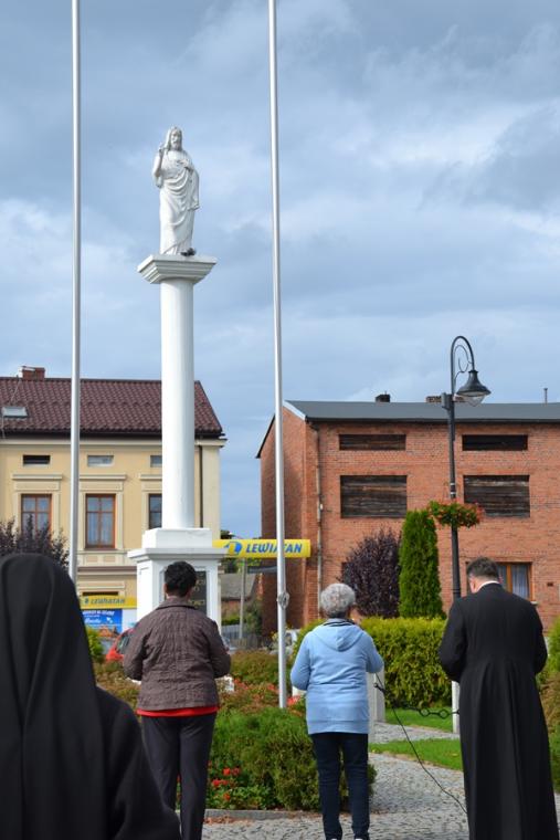 Dzień ten był szczególny jeszcze z jednego powodu. W tym dniu ze wszystkich zakątków świata popłynęła ku niebu modlitwa Koronką do Miłosierdzia Bożego na ulicach miast. Wielkie wołanie „o miłosierdzie dla nas i świta całego” popłynęło ku niebu z różnych miejsc. Mikstacka parafia włączyła się w tę modlitwę po raz piąty. O godzinie 15:00 pod przewodnictwem ks. proboszcza Krzysztofa Ordziniaka spotkaliśmy się na Rynku przy pomniku Najświętszego Serca Pana Jezusa. To szczególne i ważne miejsce dla naszej wspólnoty. Został on poświęcony 12 lipca 1936 roku. To wtedy ówczesny burmistrz p. Franciszek Toboła wypowiedział słowa Aktu poświecenia się miasta Najświętszemu Sercu Jezusa.