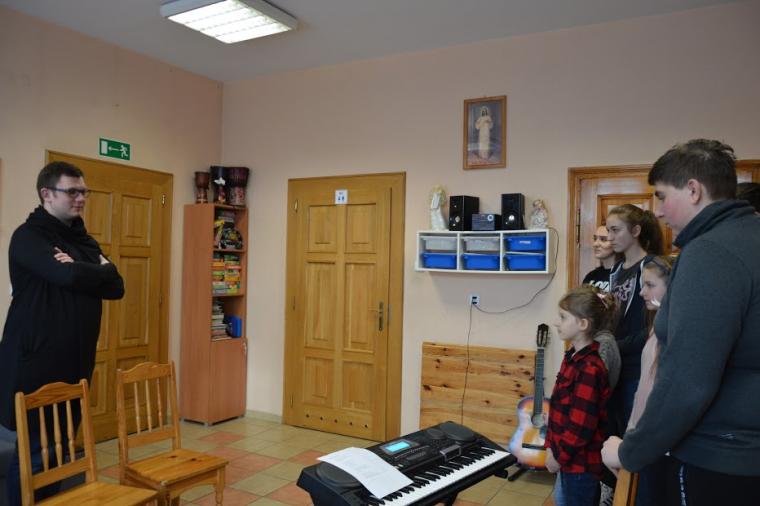 Przez trzy dni młodzi mikstaccy parafianie spotykali się na Warsztatach Muzycznych prowadzonych przez Pana Rafała Maciejewskiego. Inicjatorem zorganizowania Warsztatów był ks. wikariusz Krzysztof Lipiński. Okazało się, że to był doskonały pomysł na spędzenie trzech feriowych dni. Dlaczego?  Bo okazało się, że jeśli młodym zaproponuje się ciekawy sposób spędzenia wolnych chwil to potrafią przeżyć prawie cały dzień bez komputera. Większość uczestników Warsztatów śpiewa w parafialnym zespole młodzieżowym . Warsztatowy czas pozwolił im na doskonalenie swoich umiejętności, kształcenie głosu. Młodzi poznali nowe pieśni, a że warsztatowa praca przyniosła  rezultaty można było przekonać się podczas piątkowej Mszy św.  Trudno, żeby nie było widać efektów pracy skoro młodzi pracowali pod fachowym okiem Pana Rafała Maciejewskiego, który współpracuje ze znanym z troski o piękno śpiewu wykonywanego podczas Eucharystii Dominikańskim Ośrodkiem  Liturgicznym.  Młodzi z zaangażowaniem ćwiczyli pod okiem Mistrza Pana Rafała, a czynili to wszystko na chwałę Bożą.W radosnej atmosferze, w gościnnych progach domu Zgromadzenia Sióstr Franciszkanek Rodziny Maryi poznawali tajniki właściwego operowania głosem.  Trzy dni jednak szybko minęły i pewnie młodzi trochę żałowali, że to już koniec. A może jednak nie koniec tylko  początek... Warsztaty w mikstackiej wspólnocie zostały zorganizowane po raz pierwszy. Trzeba mieć nadzieję, że nie ostatni. Końcowym akcentem Warsztatów były słowa podziękowania dla Pana Rafała za trud  ich przeprowadzenia. A w niedzielę podczas Eucharystii zespół młodzieżowy zaprezentuje efekty swojej pracy. Oczywiście wszystko na chwałę Bożą!
