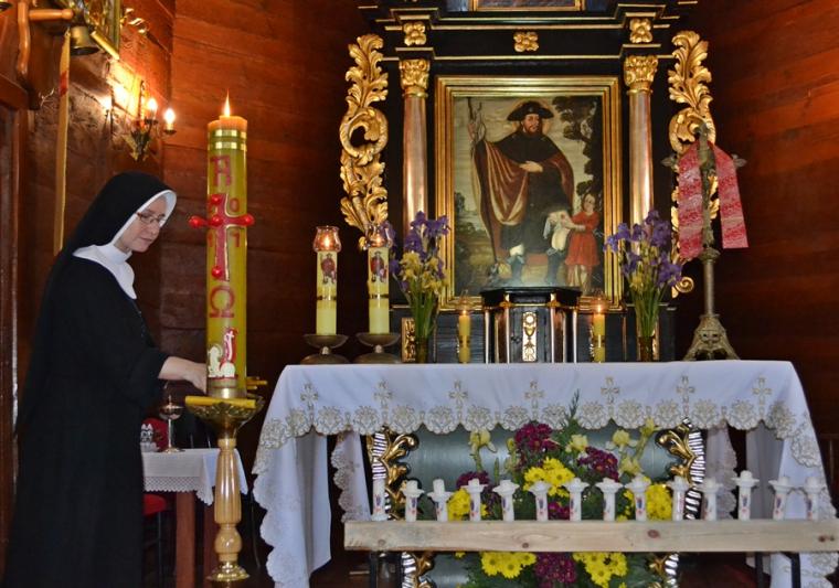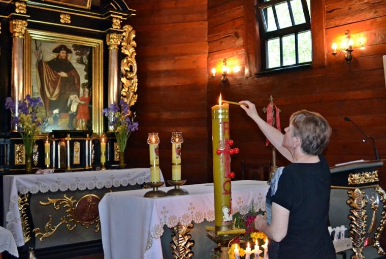 Nabożeństwo poprowadził w sanktuarium ks. kan. Krzysztof Ordziniak, który przewodniczył modlitwie oraz odczytywał poszczególne rozważania spotkań. Podczas nabożeństwa zapalony był paschał, od którego przy rozważaniu kolejnego spotkania odpalana była świeczka.