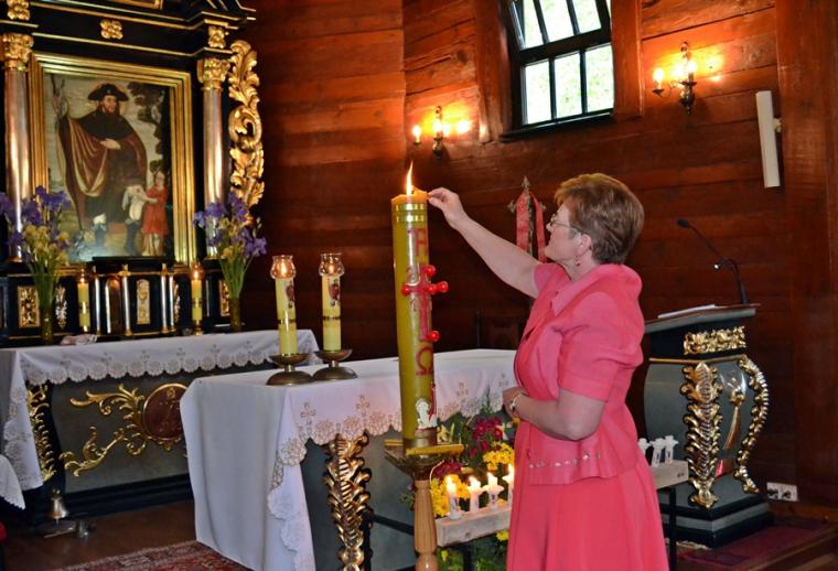 Nabożeństwo Drogi Światła wzorowane jest na nabożeństwie Drogi Krzyżowej. Podczas Drogi Krzyżowej rozważamy 14 stacji męki i śmierci Chrystusa. Droga Światła to czternaście spotkań ze zmartwychwstałym Panem. Podczas tego nabożeństwa przeżywamy zmartwychwstanie Jezusa, spotkanie z uczniami przy pustym grobie, objawienie się Jezusa Marii Magdalenie, spotkanie Jezusa z uczniami zmierzającymi do Emaus. Mikstackie sanktuarium to także takie wyjątkowe Emaus. W Niedzielę Zmartwychwstania od pokoleń mieszkańcy Mikstatu z paschałem i figurą zmartwychwstałego udają się w procesji z kościoła farnego na Cmentarne Wzgórz głosząc: Alleluja! Jezus żyje! Dziś podczas nabożeństwa Drogi Światła rozważaliśmy wiarę uczniów, którzy na swej drodze nie poznali swego Mistrza. Nabożeństwo stało się okazją do spotkania z uczniami, którzy dopiero przy łamaniu chleba poznali swego Nauczyciela. Jedno ze spotkań zmartwychwstałego Pana z uczniami przybliżyło nam scenę przekazania uczniom władzy odpuszczania grzechów. Było także okazja do tego, byśmy jak św. Tomasz umocnili swoją wiarę. Spotkaliśmy się podczas rozważań także z Piotrem, któremu Jezus przekazuje prymat. Pan podczas spotkań po zmartwychwstaniu posyła uczniom obiecanego Ducha Świętego. Posłał go nie tylko uczniom, ale także każdemu z nas, by nas umacniał, pomagał w mężnym wyznawaniu wiary. Gdy na specjalnie przygotowanym stojaku zapłonęła 14 świeca był to znak zbliżającego się końca nabożeństwa Drogi Światła. Nabożeństwo Drogi Światła sprawowane było w tym roku w mikstackim sanktuarium po raz drugi. Pierwsze przeżywaliśmy w Święto Miłosierdzia Bożego. Na zakończenie ks. kan. Krzysztof Ordziniak udzielił uczestnikom nabożeństwa Drogi Światła błogosławieństwa.