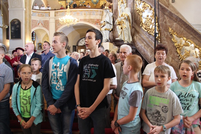 Wskazywał, że rodzina znajduje się dzisiaj pośrodku wielkiego zmagania między dobrem a złem, między życiem a śmiercią. – Jeśli świat, w którym żyjemy, tak boleśnie doświadcza rozdwojenia to zauważmy, że to rozdwojenie najbardziej dotkliwie przechodzi przez rodzinę, wokół której ciągle podnosi się wielka wrzawa i co chwilę dochodzi do wielkiego wzburzenia. I dlatego trzeba każdej chrześcijańskiej rodzinie powtórzyć te słowa, które usłyszał od Jezusa św. Paweł: „Odwagi, trzeba bowiem, żebyście zaświadczyli o Mnie”. Potrzeba odwagi, bo wielka jest siła świadectwa, jakie dają katoliccy małżonkowie trwający wiernie w złożonej wzajemnie przysiędze, prowadzący na co dzień chrześcijańskie życie, przekazujący je jak najcenniejszy skarb następnym pokoleniom. Niech św. Józef, patron tego miejsca, opiekun całego Kościoła wyprasza taką odwagę wszystkim małżonkom – mówił kaznodzieja.