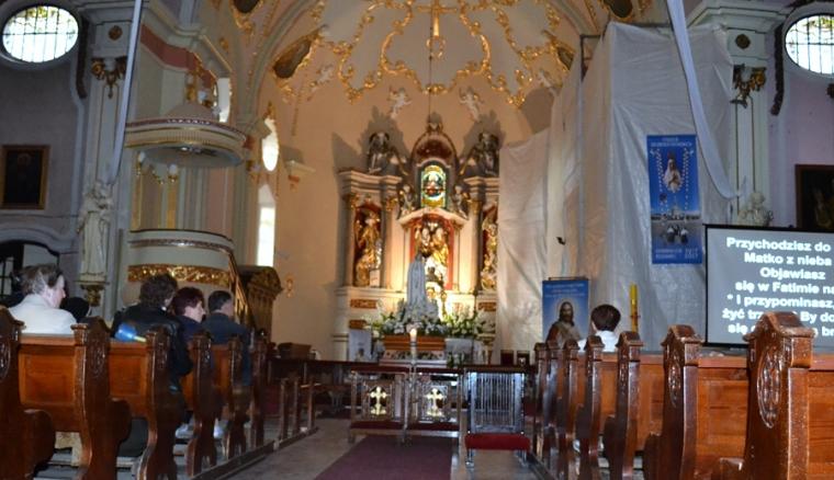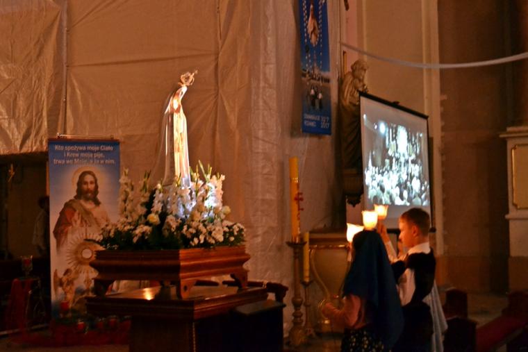 „ My zgromadzeni na nabożeństwie fatimskim odmawiamy różaniec, śpiewamy pieśni maryjne, prosimy Maryję o wstawiennictwo u Trójjedynego Boga we wszystkich naszych potrzebach. Tym samym jesteśmy wspólnotą, której celem jest sam Bóg”- powiedział do wiernych ks. kan. Krzysztof Ordzianiak