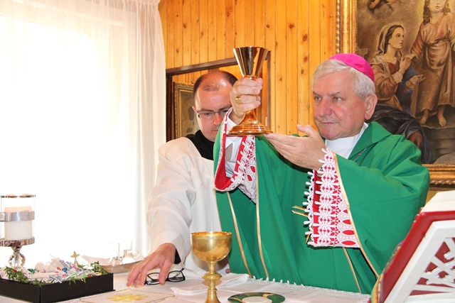 Podczas Mszy św. biskup poświęcił różańce własnoręcznie wykonane przez pensjonariuszy.