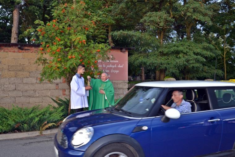 Po Mszy Świętej o. Andrzej odmówił specjalną modlitwę, która poprzedziła obrzęd błogosławieństwa pojazdów na parkingu przy sanktuarium. Każdy kierowca otrzymał obrazek, na którym umieszczone są słowa modlitwy: "Boże, daj mi pewną rękę i bystre oko,  abym nikomu nie wyrządził   żadnej szkody. Nie pozwól  Dawco  życia, bym stał się  przyczyną  śmierci  lub kalectwa, a także zachowaj od nieszczęścia i wypadku, pohamuj pokusę nadmiernej szybkości. Oby piękno stworzonego  przez Ciebie świata i radość  Twej łaski  towarzyszyła mi   na zawsze. Amen".