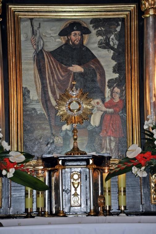 Obraz w ołtarzu głównym w Diecezjalnym Sanktuarium św. Rocha w Mikstacie