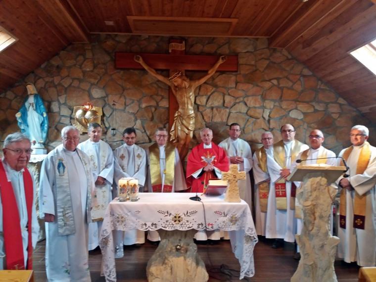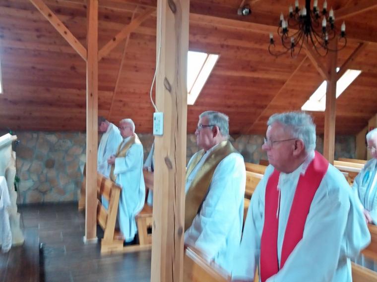 W dniach od 11-14 września w Ośrodku Szkoleniowo – Wypoczynkowym „ PASCHA” w Przedborowie  (diecezja kaliska) odbywały się rekolekcje kapłańskie. Prowadził je o. Hubert Matusiewicz OH  z Warszawy.  Uczestniczyło w nich  dwunastu kapłanów z diecezji kaliskiej, archidiecezji gnieźnieńskiej i kapłan pracujący w misji polskiej w Niemczech. Rekolekcje odbywały się pod hasłem: „Dar spojrzenia Matki”. Podczas pięciu   konferencji i homilii wygłaszanych podczas Eucharystii Ojciec Rekolekcjonista nawiązywał do Jubileuszu 100- lecia objawień w Fatimie i 300-lecia  koronacji wizerunku Jasnogórskiej Matki i Królowej. Kapłani uczestniczący  w rekolekcjach każdego dnia  spotykali się w kaplicy na wspólnej liturgii godzin, Koronce do Miłosierdzia Bożego. Nie mogło oczywiście zabraknąć w tym szczególnym okresie indywidualnej i wspólnej Adoracji Jezusa ukrytego w Najświętszym Sakramencie. Ważnym momentem w czasie rekolekcji była okazja do sakramentu pokuty i pojednania i modlitwy wynagradzającej Najświętszemu Sercu Jezusowemu za grzechy. Rekolekcje zakończyły się  wspólną Eucharystią i agapą. Umocnieni duchowo słowem o. Huberta kapłani powrócili do swoich parafii, by z nową energią i zaangażowaniem podjąć posługę wśród powierzonych  ich opiece wiernych. Ośrodek, w którym odbywały się rekolekcje położony jest w lesie. Szum drzew, śpiew ptaków sprzyjały refleksji, wyciszeniu, modlitewnej zadumie.