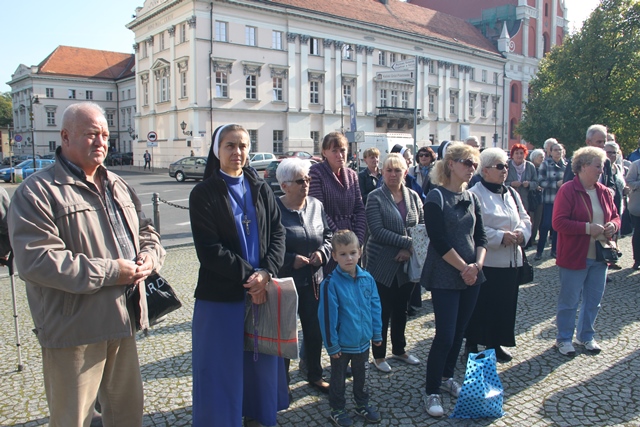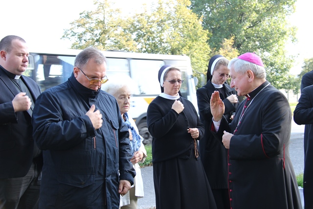 Po odmówieniu Koronki do Miłosierdzia Bożego biskup kaliski Edward Janiak udzielił wiernym błogosławieństwa Bożego i ofiarował każdemu różaniec.