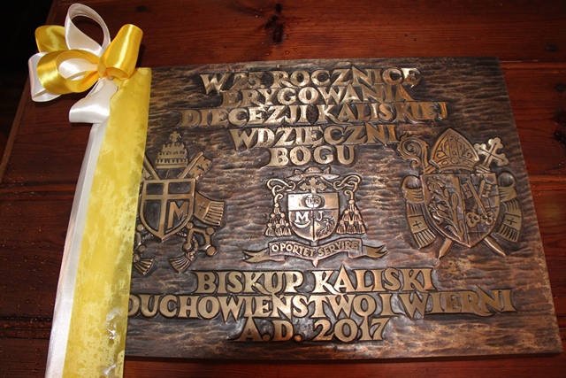 Biskup kaliski poświęcił nowy sztandar ufundowany dla parafii przez jubilatkę oraz tablicę upamiętniającą jubileusz 25-lecia istnienia diecezji kaliskiej.
