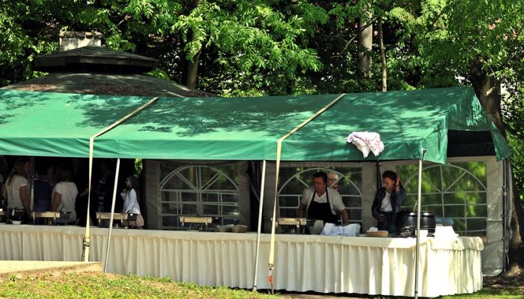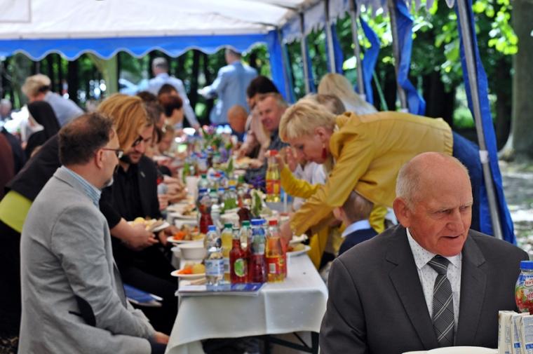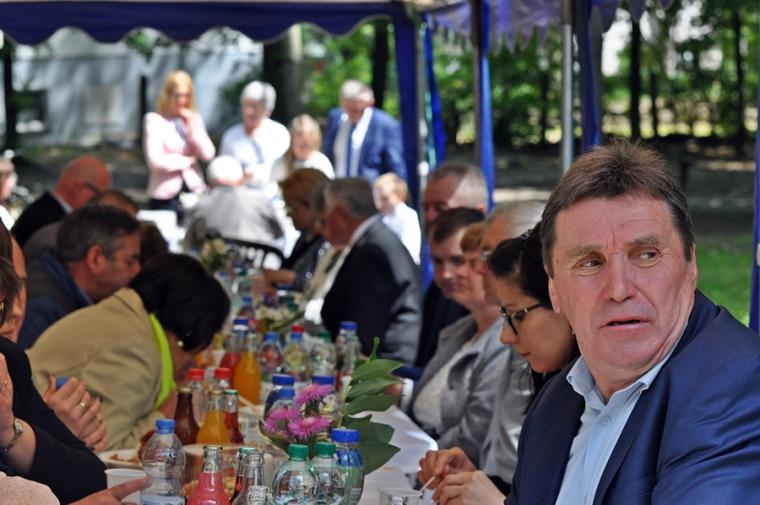 Po dziękczynieniu Panu Bogu nadszedł czas na radosne spotkanie w Parku Świętego Rocha. Dlaczego tam? Wielkim pragnieniem księdza Jubilata było spotkanie się przy stole ze wszystkimi uczestnikami dziękczynnej Eucharystii. Żadna sala nie byłaby w stanie pomieścić wszystkich tych, którzy w tym wyjątkowym dniu ofiarowali ks. Jubilatowi najcenniejszy dar – modlitwę.