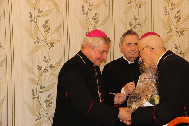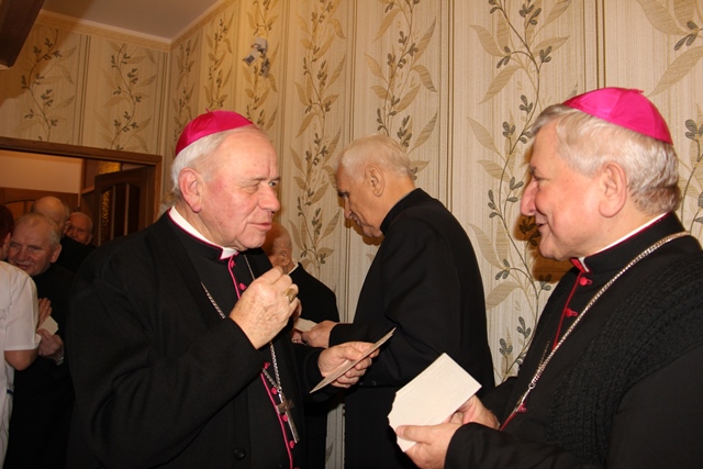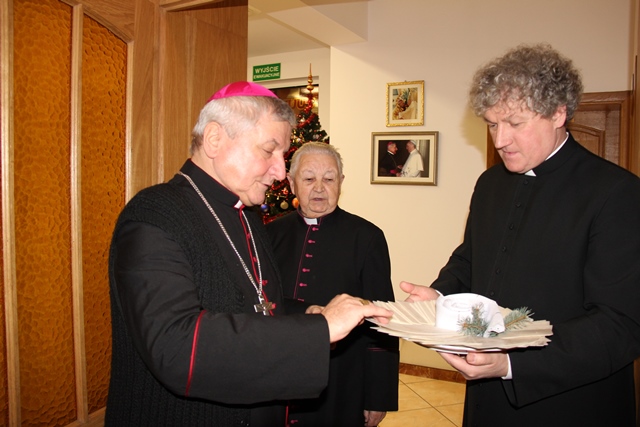 W spotkaniu opłatkowym uczestniczyli też biskup pomocniczy Łukasz Buzun, biskupi seniorzy Stanisław Napierała i Teofil Wilski oraz dyrektor domu ks. prał. Jan Wolniak.
