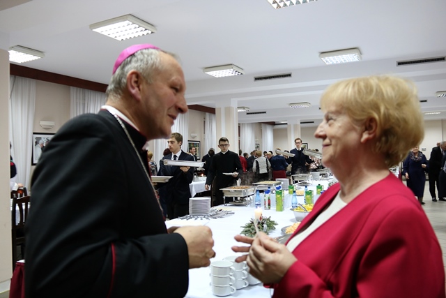 Po Eucharystii przedstawiciele parafialnych oddziałów Akcji Katolickiej spotkali się z biskupem w refektarzu, gdzie przełamali się opłatkiem. - Chciałbym życzyć wszystkim, którzy są włączeni we wspólnotę Akcji Katolickiej, żeby ten rok 2019 był rokiem, który będzie zbliżał nas do Pana Jezusa, bo to jest zasadniczy element naszego życia – życzył bp Buzun. Życzenia złożył także Robert Lis, prezes Diecezjalnego Instytutu Akcji Katolickiej