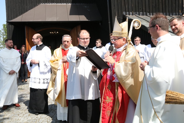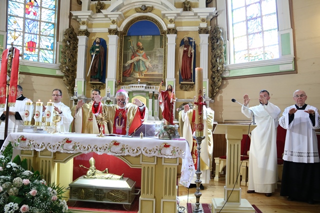 Podczas Mszy św. biskup poświęcił młodzieży krzyżyki i figurę św. Józefa, która jest darem rodziców dzieci pierwszokomunijnych.Uroczystość zakończyła procesja do nowych stacji św. Wojciecha, podczas której biskup poświęcił każdą stację. Po Mszy św. wierni mogli ucałować relikwie św. Wojciecha.