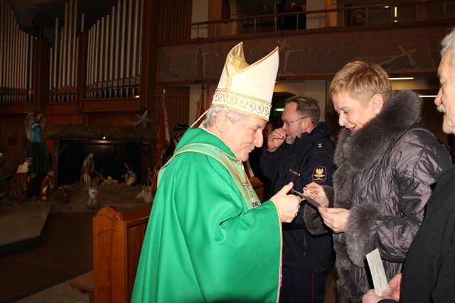 Spotkanie opłatkowe poprzedziła Msza św. w kościele św. Pawła Apostoła w Ostrowie Wielkopolskim pod przewodnictwem biskupa kaliskiego Edwarda Janiaka.