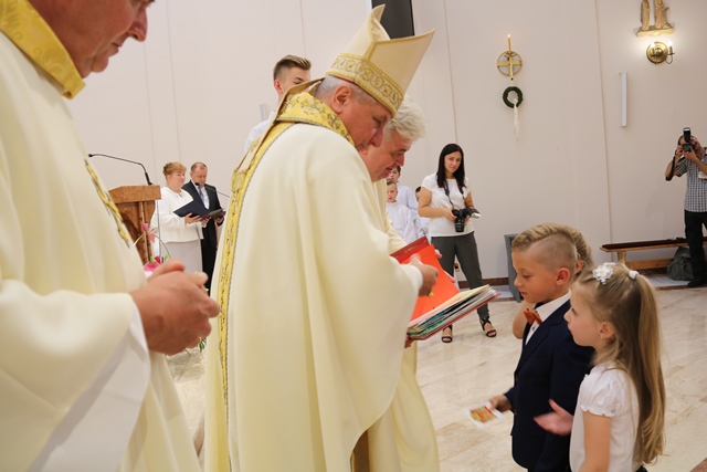 Prosił wiernych, aby nie przechodzili obojętnie obok kościoła. - Niech ta świątynia będzie zawsze magnesem, który nas przyciąga. Nie przechodźmy obok niej obojętnie. Niech ona będzie czymś bez czego nie możemy żyć. Pamiętajmy, że Kościół jest Chrystusowy. To takie piękne i ważne, żebyśmy cichością i dobrym sercem zdobywali świat dla Chrystusa, nie złością, nie odwetem, zło za zło, ale dobrem za dobro, a także dobrem za zło – mówił hierarcha.