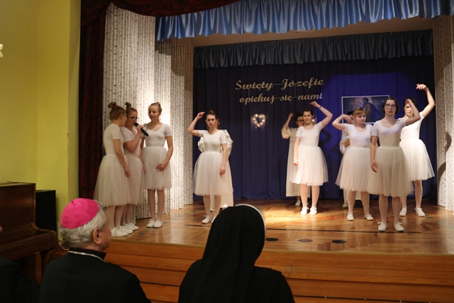 Po Mszy św. młodzież ze Specjalnego Ośrodka Wychowawczego Zgromadzenia Sióstr św. Elżbiety zaprezentowała swoje talenty wokalne i taneczne w ramach akademii przygotowanej z okazji święta św. Józefa.- Życzę, by św. Józef, którego tutaj czcimy i staramy się naśladować, opiekował się osobami mieszkającymi i pracującymi w tym domu – mówiła na zakończenie spotkania s. Teresa Dorsz, dyrektor domu sióstr elżbietanek w Ostrowie Wielkopolskim.