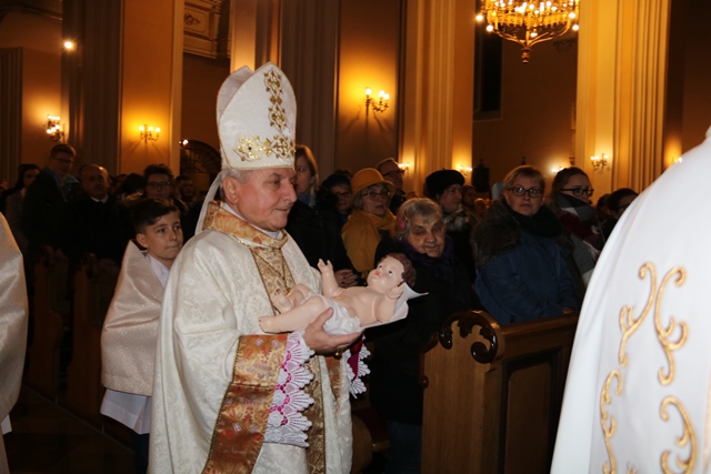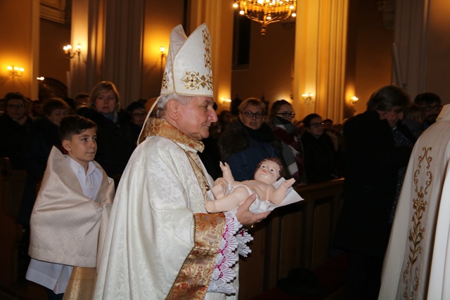 Przed rozpoczęciem Eucharystii w procesji biskup kaliski Edward Janiak zaniósł figurkę Dzieciątka do żłóbka.