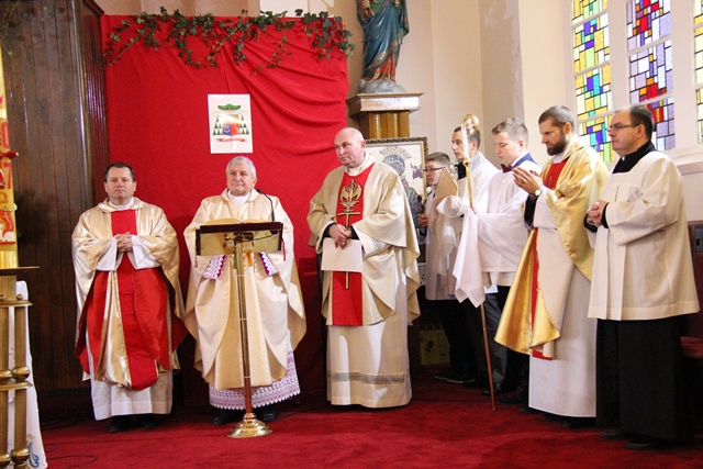 Wraz z biskupem kaliskim Edwardem Janiakiem modlili się: ks. Mirosław Lipka, proboszcz parafii Chrystusa Króla w Marszałkach, ks. Marek Zbaracki, ks. Dariusz Szyszka i kapłani z dekanatu grabowskiego z dziekanem ks. kanonikiem Ryszardem Ryńcem.