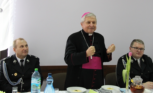 W swoim wystąpieniu bp Edward Janiak wskazywał na ważną rolę strażaków w życiu społeczeństw lokalnych. – Dziękuję wam, że wychowujecie młodych ludzi do ofiarności, poświęcenia dla drugiego człowieka, aby potrafili przejść z teorii do życia. Spełniacie w tym zakresie ogromną rolę. Wasza obecność szybko zorganizowana, w ciągu kilkunastu minut, ratuje ludziom życie - stwierdził ordynariusz diecezji kaliskiej.Biskup zapewniał o pamięci modlitewnej. Wyjawił, że raz w miesiącu odprawia Mszę św. w intencji strażaków.
