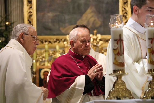 Dziękował pierwszemu biskupowi kaliskiemu Stanisławowi Napierale za pełnienie z radością posługi w Kościele Kaliskim. Słowa wdzięczności skierował do duchowieństwa, sióstr zakonnych i wiernych.