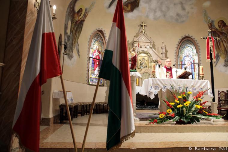 Wierni - m.in. Polonia z Budapesztu, Tatabánya, Veszprém i Dunaújváros, w obecności ambasadora RP na Węgrzech p. Sebastiana Kęcieka wraz z rodziną - podczas Mszy św. odpustowej sprawowanej przez proboszcza Polskiej Parafii Personalnej na Węgrzech ks. Krzysztofa Grzelaka SChr. modlili się o dary i łaski dla całej wspólnoty polonijnej i braci Węgrów, którzy obok Polaków od blisko 96 lat przychodzą do naszej kőbányszkiej świątyni. Proszono Matkę Bożą o pokonanie lęku wobec świata i wobec zła. Proszono o pokój dla świata i ustanie wojen, o wstawiennictwo dla całej Polonii na świecie aby dawała świadectwa wiary i naszej polskiej tożsamości. Mszę św. zakończyło wspólne odmówienie Litanii Loretańskiej i wystawienie Najświętszego Sakramentu.