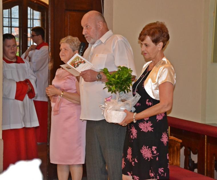 Po Mszy Świętej nadszedł czas na życzenia dla Solenizanta. Najpierw w imieniu całej wspólnoty parafialnej złożył je ks. proboszczowi główny celebrans, ks. kan. Grzegorz. Były oczywiście życzenia Bożego błogosławieństwa, opieki Maryi. Ks. kan. powiedział m.in. „ Życzę Ci, abyś był jak święty Krzysztof, który pomagał pielgrzymom przedostać się  się z jednego brzegu na drugi. Abyś Ty był tym, który potrafi ludzi , którzy zostali Ci powierzeni, przeprowadzić do Domu Ojca”. Znalazł się w tych życzeniach „ Rochowy” akcent, bo posługę kustosza sanktuarium ks. kan. Krzysztof spełnia z wielkim zaangażowaniem.Potem przyszedł czas na życzenia od przedstawicieli parafian. Życzenia ks. Proboszczowi złożyła delegacja  Liturgicznej Służby Ołtarza, dzieci, rada parafialna, zespół  charytatywny, przedstawiciele wspólnot działających w parafii.