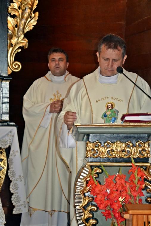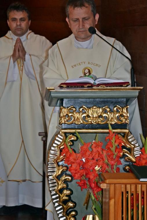 Kontynuując kapłan powiedział, że dla człowieka krzyż jest znakiem zwycięstwa, a nie przekleństwa. Nawiązując do postaci św. Rocha celebrans podkreślił, że nie uciekał on od krzyża, od cierpienia, bo przeżywał je w łączności z Chrystusem. „ Nie ma Chrystusa bez krzyża. Nie wolno szukać krzyża bez Chrystusa. Krzyż i Chrystus zawsze razem. Zanurzając się w Chrystusa przyjmujemy jego krzyż, a więc przyjmujemy go jako znak błogosławieństwa, a nie przekleństwa” – dodał celebrans. W dalszej części kapłan zwrócił uwagę na pewne zabobony związane z krzyżem, podkreślając że jest to krzyż bez Chrystusa. Kapłan zwrócił uwagę, że trudne chwile przybliżają nas do Chrystusa, umacniają naszą wiarę.