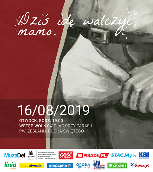 Stowarzyszenie MuzaDei zaprasza na plenerowy koncert piosenek i utworów literackich z okresu okupacji i Powstania Warszawskiego „Dziś idę walczyć mamo”, który odbędzie się 16 sierpnia o godz. 19.00 na terenie parafii Zesłania Ducha Świętego w Otwocku.