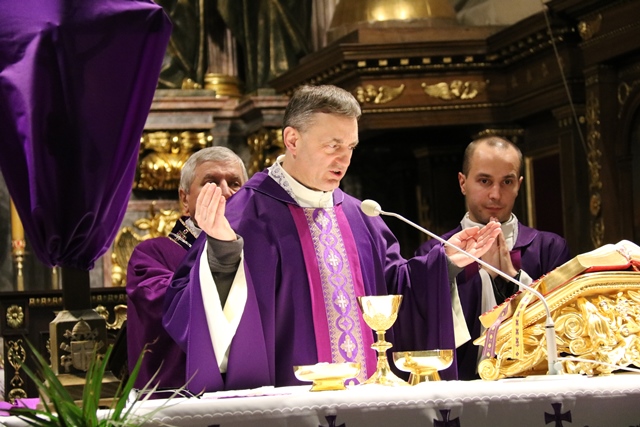 Wskazywał, że śmierć Jezusa na krzyżu jest ogromną tajemnicą. - Pamiętajmy, że to wszystko miało wymiar miłości do Ojca i do nas. Jezus umarł dla naszego zbawienia. Przejęci tą postawą uniżenia, milczenia, pokory naszego Zbawiciela prośmy, abyśmy jak najlepiej przeżyli dzisiaj tajemnicę naszego zbawienia – powiedział kaznodzieja.