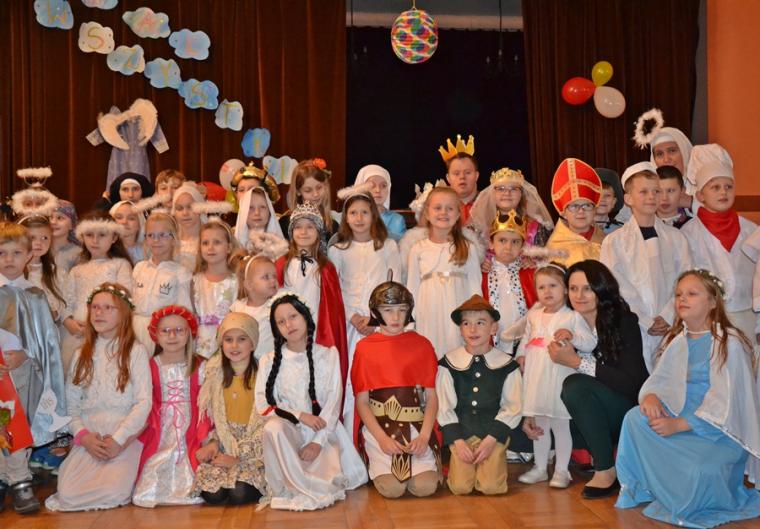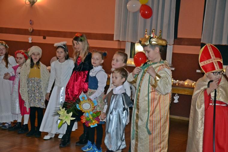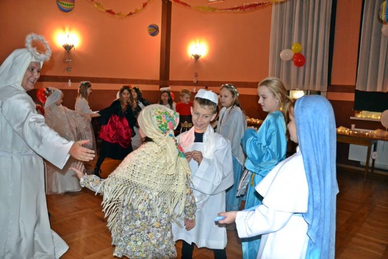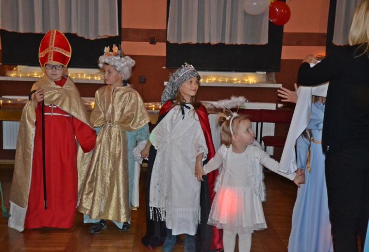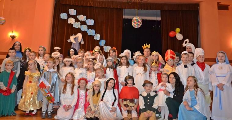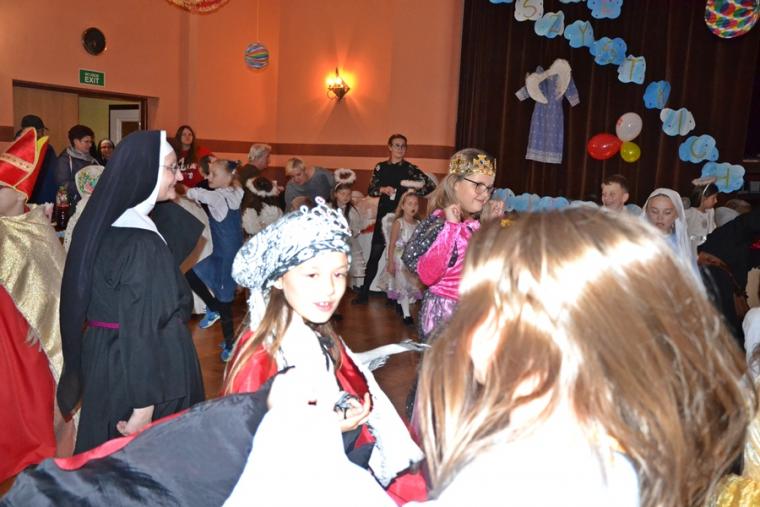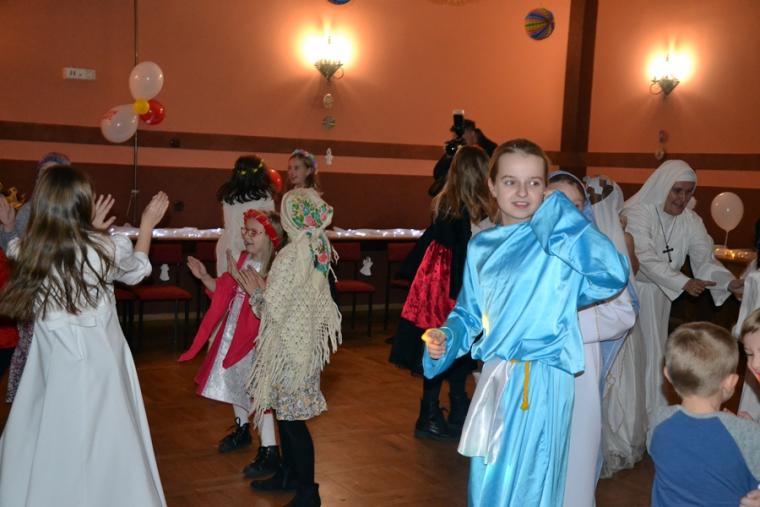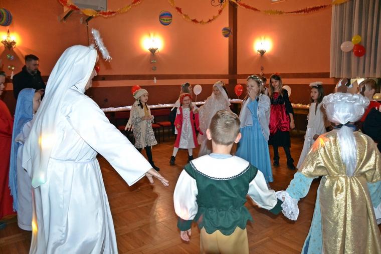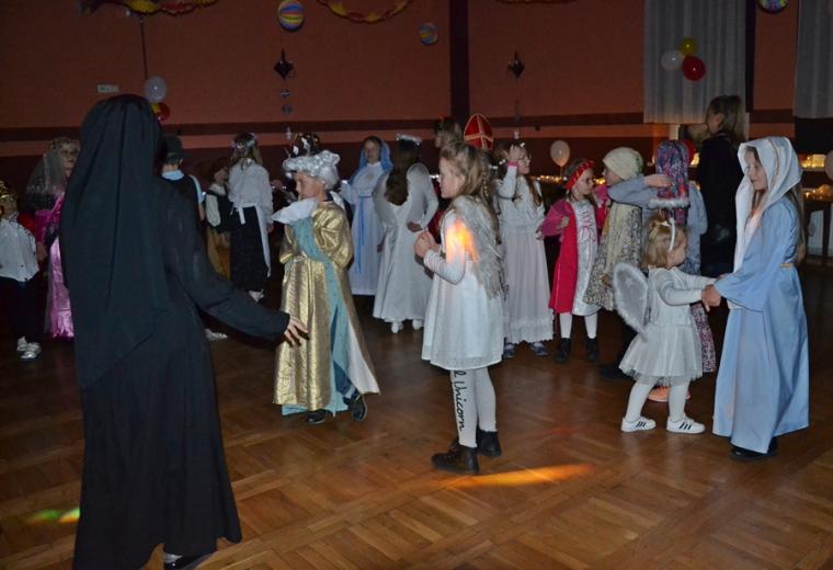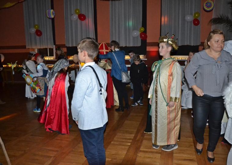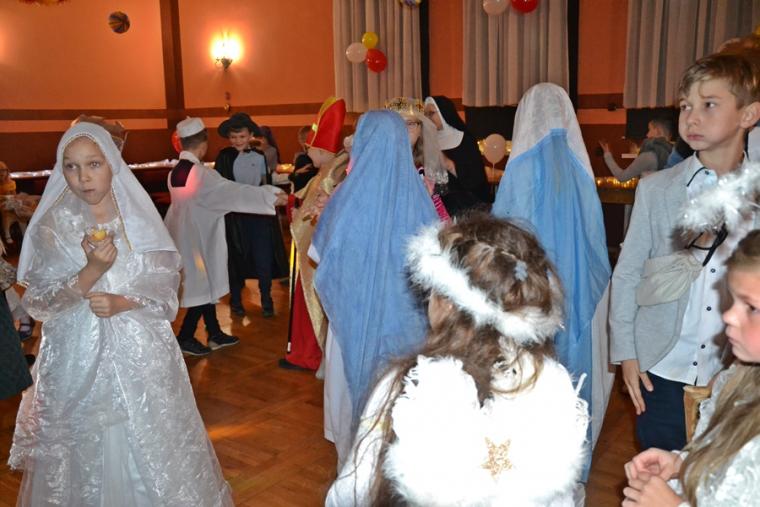 Za jakich Świętych przebrały się dzieci? Najliczniejszą grupę stanowiły Aniołki. Była na balu Maryja, były święte siostry zakonne, a wśród nich Apostołka Bożego Miłosierdzia Faustyna. Nie zabrakło na tym niezwykłym balu św. Jana Pawła II. Na mikstackim Balu Wszystkich Świętych bawiły się m.in. św. Zofia, Jadwiga, Cecylia, Marta, Matka Teresa z Kalkuty, św. Rozalia,  ale także dzieci fatimskie. Nie zabrakło Kacpra, Melchiora, Baltazara,. Dobrze bawił się na balu św. Marcin i św. Hubert. Wszystkich Świętych uczestników mikstackiego trudno wymienić.  W MGOK-u rozbrzmiewały dźwięki muzyki, przy której świetnie bawili  się wszyscy uczestnicy balu, bo przecież  Święci to ludzi uśmiechnięci …