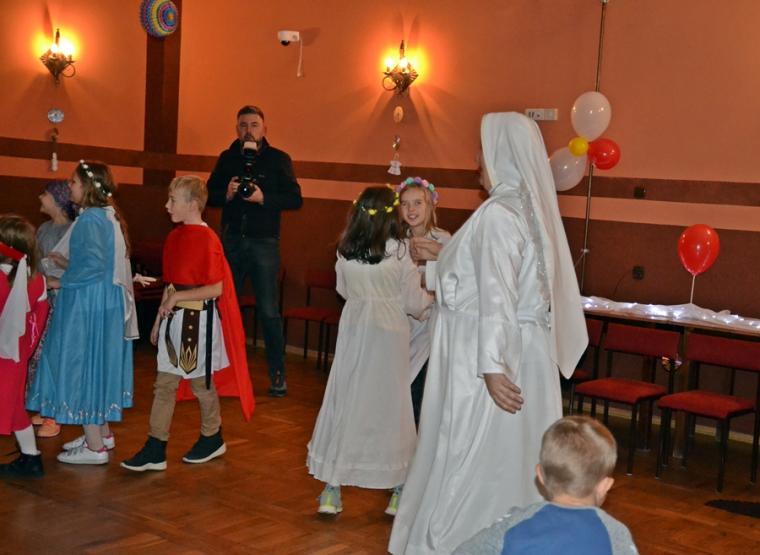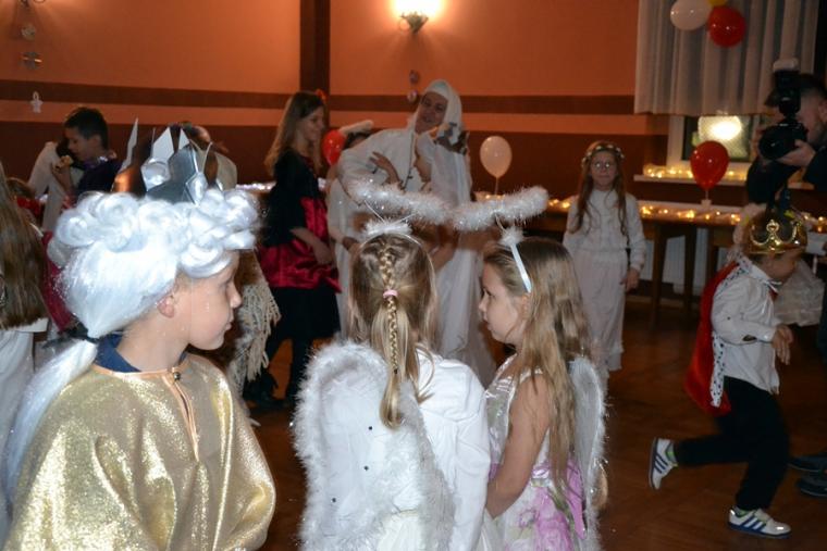 Nie zabrakło konkursów z nagrodami i słodkości. Zapewne uczestnicy Marszu i Balu Wszystkich Świętych na długo zapamiętają ten październikowy wieczór. Ponadto pokazali, że każdy może być Świętym, jeśli tylko chce … Wcielając się w postacie różnych Świętych pokazali jak różne są drogi prowadzące do świętości. Jeszcze jedna refleksja. W przededniu    uroczystości Wszystkich Świętych, gdy tak wiele osób przemieszczało się pospiesznie ulicami miasteczka robiąc jeszcze zakupy do ich uszu  popłynęło przesłanie: „możesz być świętym, jeśli chcesz”. Być może stało się one impulsem do postawienia pytania: czy naprawdę dążę do świętości?  Czy  chcę być świętym? Dla dzieci bal był zapewne okazją do poszukania takiego „ swojego” świętego, do zaprzyjaźnienia się z nim i do przeżycia wieczoru w duchu Bożej radości.