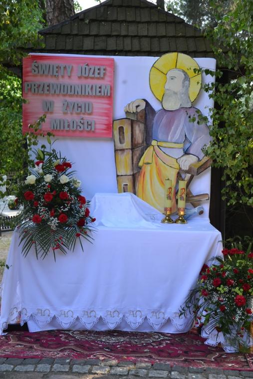 W drugiej części homilii kaznodzieja zatrzymał się na hasłach umieszczonych na poszczególnych ołtarzach. W związku z przeżywanym Rokiem św. Józefa koncentrowały się one wokół jego postaci. Na pierwszym ołtarzu możemy przeczytać hasło: „ Święty Józef przewodnikiem w życiu i miłości”, na drugim: „Uczynił tak jak mu polecił Anioł Pański”. Kaznodzieja zaakcentował, że wielokrotnie w życiu nie wiemy, jak mamy postąpić, świat podpowiada nam różne rozwiązania. Podkreślił, że tych trudnych sytuacji nie brakowało w życiu św. Józefa, ale on postępował tak jak mu Anioł polecił, gdyż jego serce było otwarte na Boga. „ Potrzeba nam takiego otwarcie naszych serc na Boga, na działanie Ducha Świętego” - dodał ks. kanonik Krzysztof. „Ojcowskim sercem - tak Józef umiłował Jezusa” te słowa znalazły się na trzecim ołtarzu. Kaznodzieja zaapelował do mężczyzn – ojców „ Panowie ojcowie zapytajcie się dzisiaj, jakie to moje serce ojcowskie jest. Czy potrafię poświęcić czas dla moich dzieci. Ile tego czasu poświęcam, ale powiem więcej – ojcowskie serce, a więc ile czasu poświęcam żonie”. Na czwartym ołtarzu znalazły się słowa:„Miłość, która ukształtowała życie Świętej Rodziny”. Wyjaśniając te słowa celebrans zwrócił uwagę, że to właśnie miłość kształtuje nasze rodziny. Potrzeba nam zaufania Bogu, tak jak to czynił św. Józef zaakcentował kaznodzieja. W trzeciej części homilii ks. kanonik Krzysztof przypomniał, że od kilku lat ofiary składane przez wiernych podczas Eucharystii kończącej oktawę Bożego Ciała przeznaczane są na renowację naczyń liturgicznych. Udało się odnowić już wszystkie. W tym roku miał być odnowiony krzyż ołtarzowy, ale zgłosiła się osoba, która przechorowała cowid- 19 i przez prawie czterdzieści dni była pod respiratorem. Ten trudny czas pomógł jej przetrwać krzyż wiszący na ścianie w szpitalnej sali. W duchu dziękczynienia złożyła ofiarę na odnowienie krzyża ołtarzowego z sanktuarium. W związku z tym ofiary zebrane w tym roku zostaną przeznaczone na odnowienie monstrancji z sanktuarium.