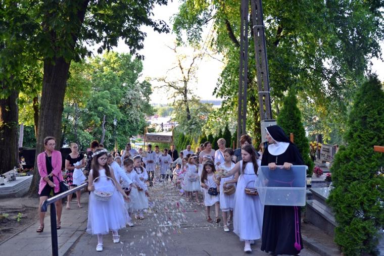 Po Eucharystii procesja wyruszyła do czterech ołtarzy, które usytuowane były na cmentarzu. Procesja przechodziła wśród grobów naszych przodków. To im zawdzięczmy naszą wiarę, ale także tradycje, które z tak wielką pieczołowitością pielęgnuje się w naszej wspólnocie i przekazuje kolejnym pokoleniom. Tak jak to już jest tradycją ołtarze przygotowali przedstawiciele poszczególnych rejonów naszej parafii. Pięknie prezentowały się ołtarze, ale Jezus znalazł także przygotowane miejsce w sercach parafian, którzy tak licznie w czasie Mszy Świętej przystąpili do Stołu Pańskiego.