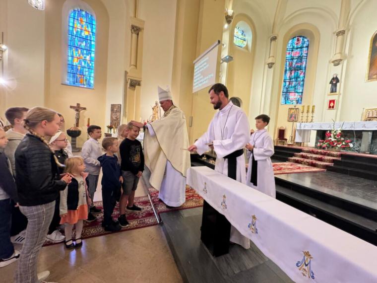 Dzieci i młodzież są przyszłością Kościoła, ale także przyszłością świata, dlatego ks. bp Piotr po zakończonej Mszy Świętej pozostał wśród wiernych i zaprosił dzieci i młodzież, aby udzielić im pasterskiego błogosławieństwa, a także rozdać pamiątkowe obrazki.