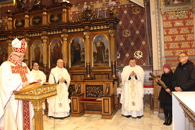 Podczas Mszy św. bp Edward Janiak poświęcił kopię krzyża papieskiego wykonaną przez tego samego rzeźbiarza. Przed udzieleniem pasterskiego błogosławieństwa biskup kaliski nawiązując do uroczystości Chrystusa Króla Wszechświata przekonywał, że krzyż jest znakiem zwycięstwa nad śmiercią. - Chciałbym, abyśmy wychodząc z tej katedry mieli przeświadczenie, że wszyscy zmierzamy do Królestwa Bożego. Podstawową prawdą naszej wiary jest prawda o zmartwychwstaniu. Chrystus na krzyżu nie pozostał, On nas odkupił na krzyżu, ale zmartwychwstał. Z tej prawdy płynie optymizm chrześcijański, dlatego warto być dobrym człowiekiem i wypełniać Boże przykazania, bo w perspektywie mamy Królestwo Boże – przekonywał bp Janiak, który dziękował członkom Akcji Katolickiej za zaangażowanie w życie Kościoła kaliskiego.
