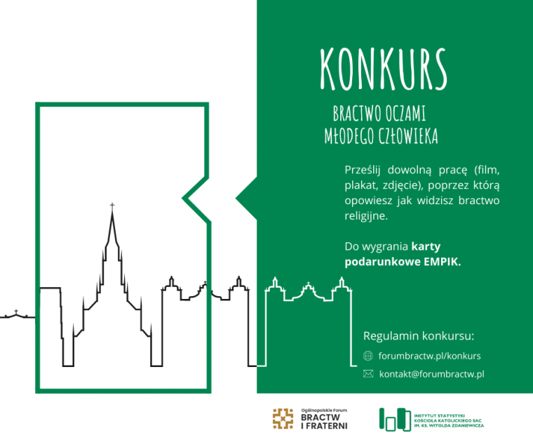 Instytut Statystyki Kościoła Katolickiego zaprasza do udziału w konkursie pt. „Bractwa religijne oczyma młodego człowieka”. Konkurs organizowany jest w ramach projektu „Konfraternie – element polskiej tradycji regionalnej i narodowej: dokumentacja, animacja i integracja".