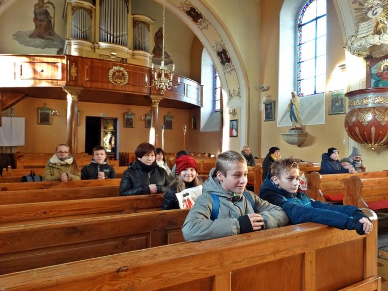Następnie uczestnicy konkursu wraz z opiekunami udali się do sanktuarium Matki Bożej Pocieszenia. Tu jego kustosz, ks. kanonik Łukasz Żurawski zapoznał wyjątkowych pielgrzymów z historią sanktuarium oraz opowiedział o obrazach i figurach świętych, znajdują się w ołtarzu głównym i ołtarzach bocznych świątyni. Ksiądz kustosz wręczył nagrodę specjalną Aleksandrze Frala- obraz Matki Bożej Pocieszenia. Aleksandra zdobyła największą ilości punktów w części konkursowej dotyczącej Sanktuarium Matki Bożej Pocieszenia w Lutogniewie. Zorganizowany konkurs to ciekawa inicjatywa, która zmotywowała uczestników do pogłębienia wiedzy o miejscowym sanktuarium, a także o sanktuarium w Gietrzwałdzie w 140. rocznicę objawień. Organizatorem konkursu była katechetka Agata Hadryś.