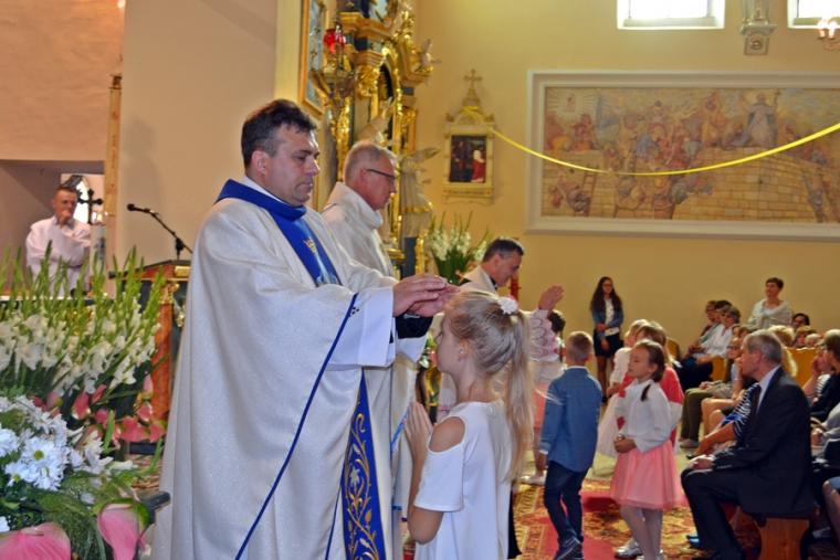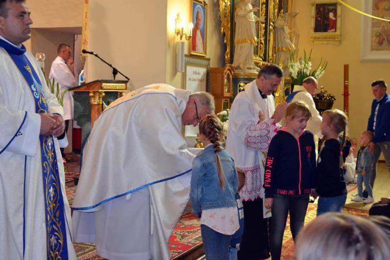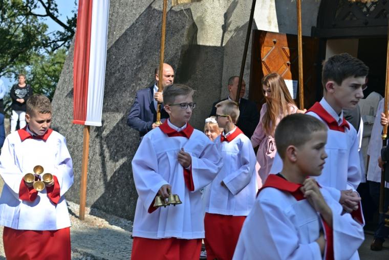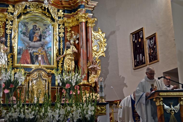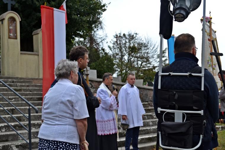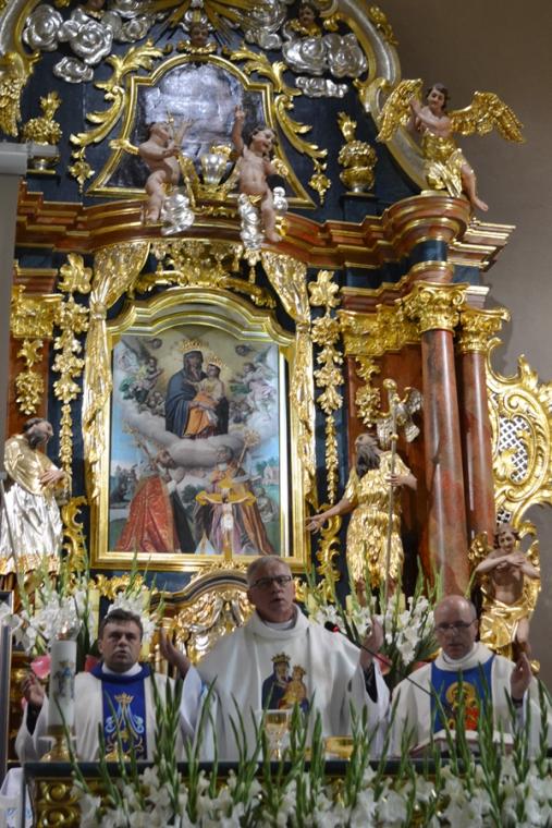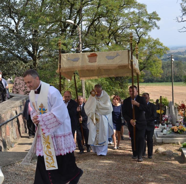 Kończąc kaznodzieja powiedział: „ Rozważając rodowód Jezusa Chrystusa nie zamartwiajmy się zbytnio, że jesteśmy, słabi, grzeszni. Jeśli przychodzimy do Chrystusa Pana i Jego Matki On z nami zrobi wielkie rzeczy. Bóg z tymi, którzy Go miłują współdziała we wszystkim. Amen”. Wiele ważnych słów wybrzmiało w homilii ks. kan. Jacka warto do nich powracać, uczynić je przedmiotem głębszej refleksji, a także rachunku sumienia. Po Mszy Świętej główny celebrans pobłogosławił ziarna zbóż. Następnie przy wystawionym Najświętszym Sakramencie odmówiona została Litania do Matki Bożej i procesja Eucharystyczna wyruszyła ścieżkami wiodącymi wśród grobów tych, którzy kiedyś oddawali cześć Matce Boskiej Kotłowskiej. Po końcowym błogosławieństwie odśpiewana została pieśń „ Boże coś Polskę”. Piękny jest ten odpustowy czas, dobrze spędzać go u stóp Matki Bożej Kotłowskiej, która z takim zatroskaniem spogląda na swe dzieci z ukoronowanego wizerunku.