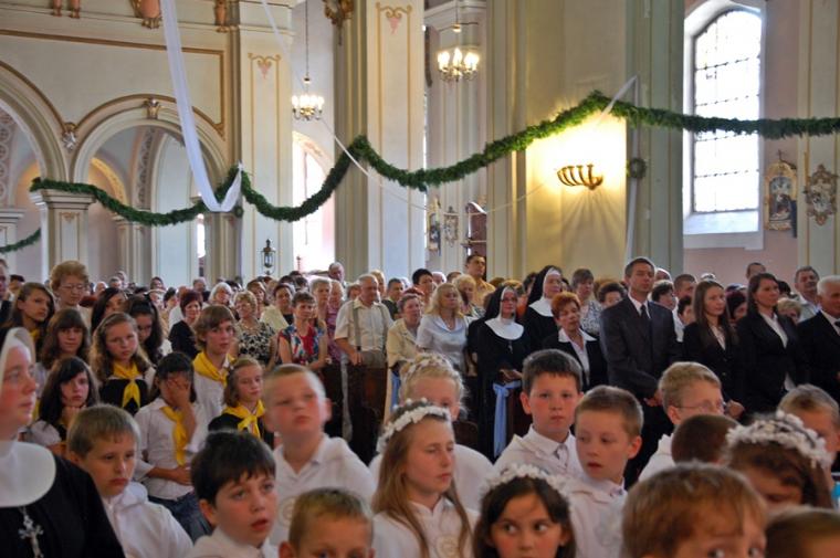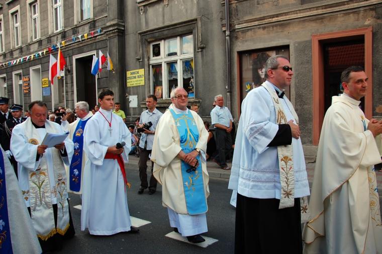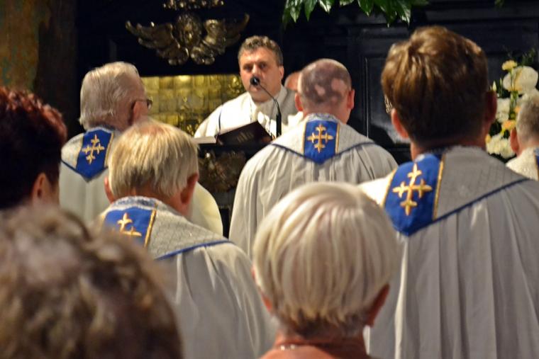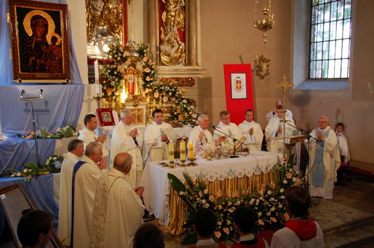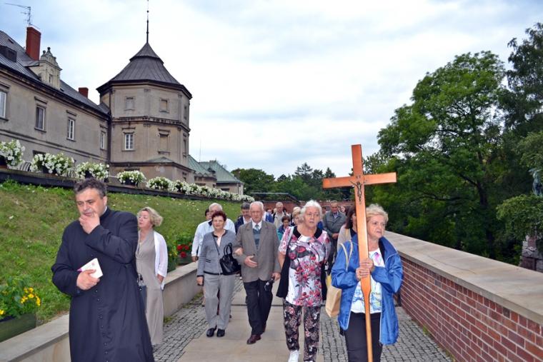 O godz. 16:00 uczestniczyliśmy w odprawianym przed obliczem Czarnej Madonny nabożeństwie różańcowym, podczas którego rozważane były tajemnice światła. Podczas pielgrzymki nie mogło zabraknąć Eucharystii. Uczestniczyliśmy w niej w Kaplicy Cudownego Obrazu, a ks. proboszcz sprawował ją w naszych intencjach. Po Mszy Świętej udaliśmy się na wały, by odprawić drogę krzyżową. Rozważania poszczególnych stacji koncentrowały się na problemie starości. Stanowiły zachętę do przeżywania tego okresu w duchu zaufania i zawierzenia Panu Bogu. Między poszczególnymi stacjami odmawialiśmy Koronkę do Miłosierdzia Bożego. Każdy kto czuł taką potrzebę mógł między stacjami przejąć krzyż. Po zakończonej drodze krzyżowej był czas na osobistą modlitwę i spotkanie z Matką i Jej Synem. Wiele osób w tym czasie modliło się w Kaplicy Cudownego Obrazu, ale także nawiedziło i zatrzymało się w Kaplicy Adoracji. Opiekun duchowy naszej pielgrzymki zachęcał nas, byśmy w tym pielgrzymkowym dniu rozważyli wszystkie tajemnice różańca. Zapewne był to czas, gdy wielu z nas kontemplowało tajemnice bolesne, powierzając Maryi także trudne, bolesne sprawy swoje i swoich bliskich. O godz. 19:00 uczestniczyliśmy w nabożeństwie czerwcowym. W słowie skierowanym do wiernych przewodniczący nabożeństwu Ojciec Paulin zwrócił uwagę na wezwanie Litanii do Najświętszego Serca Jezusowego zawarte w słowach: Serce Jezusa hojne dla wszystkich, którzy Cię wzywają. Nawiązał do kultu Serca Jezusowego. Zwrócił uwagę na obietnice dane Małgorzacie Marii Alacoque dla tych, którzy oddają cześć Jego Boskiemu Sercu. Zachęcał, by w naszych domach znalazło się miejsce dla krzyża, obrazu Jezusa, Matki Bożej, świętych. Gdy w Mikstacie rozległ się dźwięk dzwonów, przypominających o tym, że mamy być, pamiętać, czuwać, my wpatrując się w zatroskane oczy Czarnej Madonny uczestniczyliśmy w Apelu Jasnogórskim. Po Apelu wyruszyliśmy w drogę powrotną, podczas której odmówiliśmy tajemnice chwalebne różańca. To był piękny dzień...
