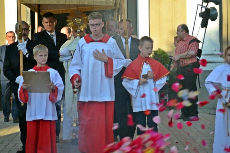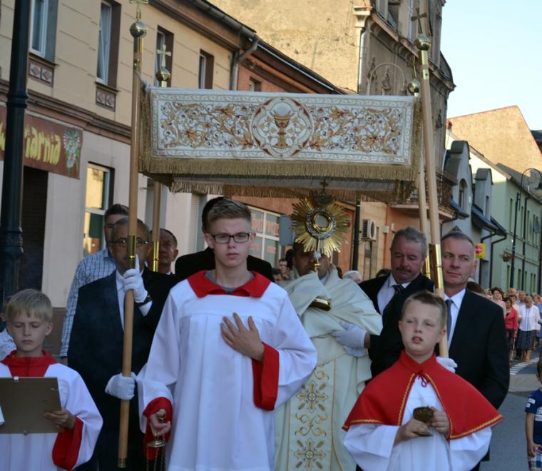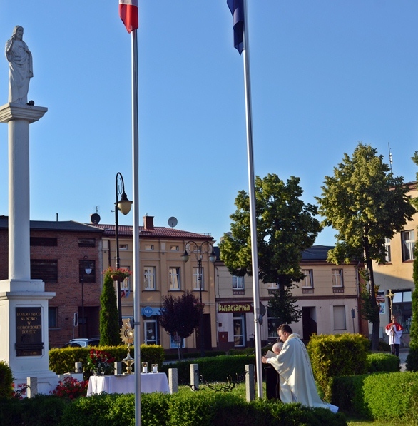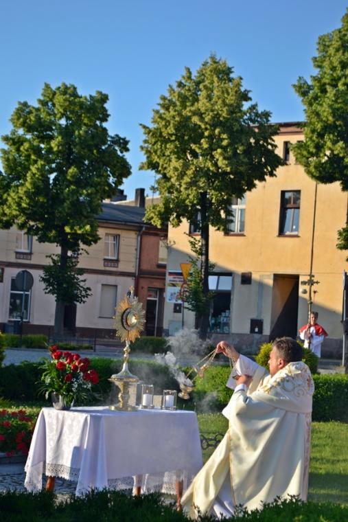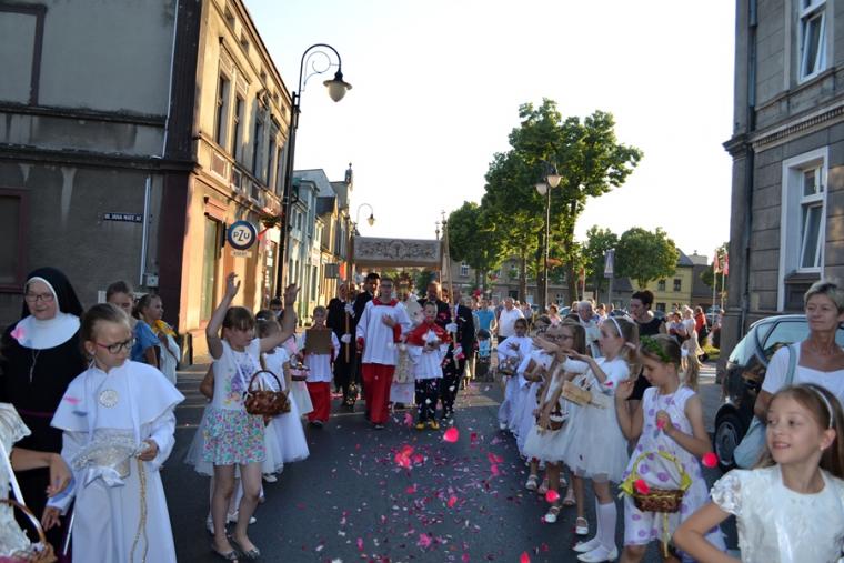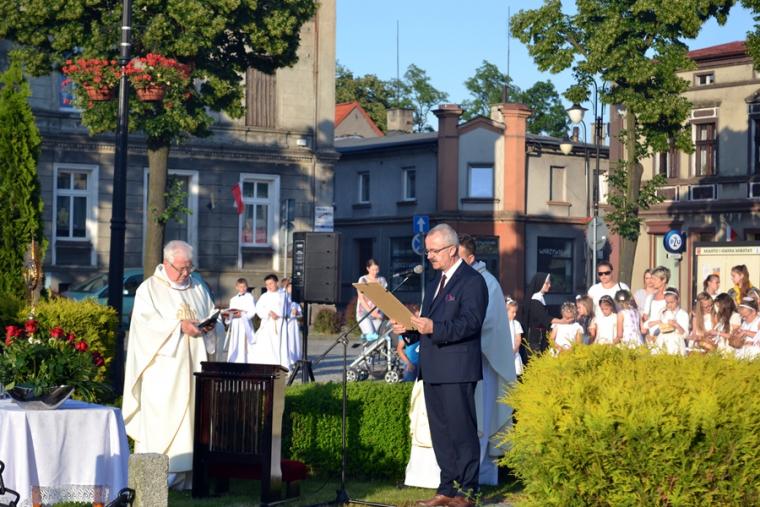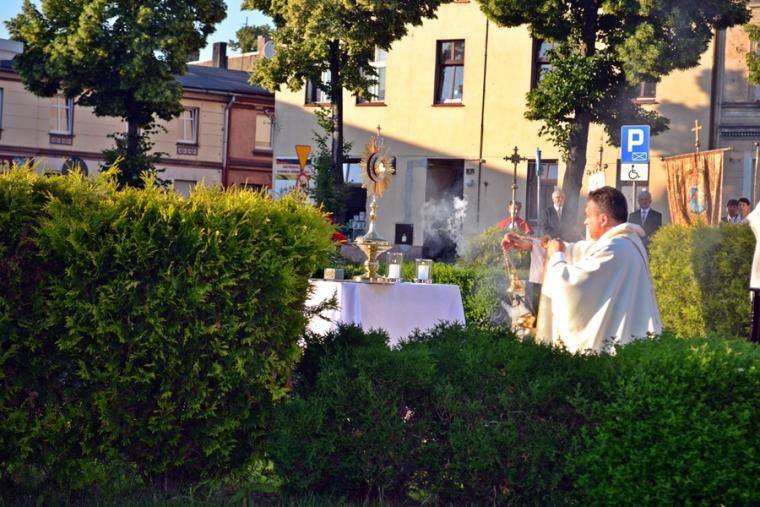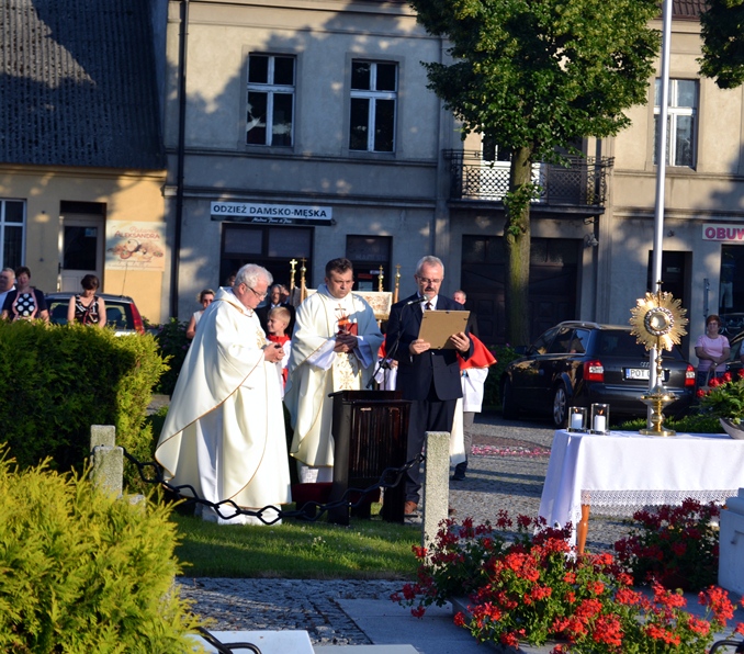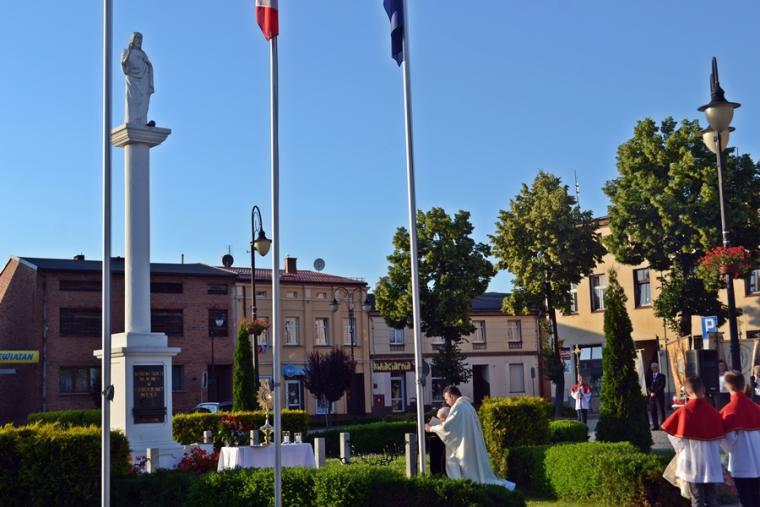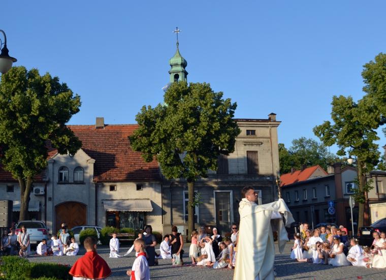 Mikstat: Eucharystią w kościele farnym, a następnie procesją z Najświętszym Sakramentem na rynek uczcili mikstaccy parafianie Najświętsze Serce Pana Jezusa.