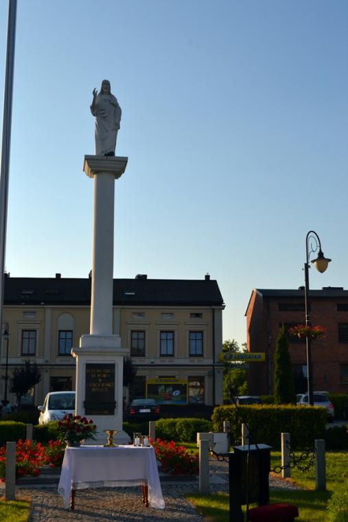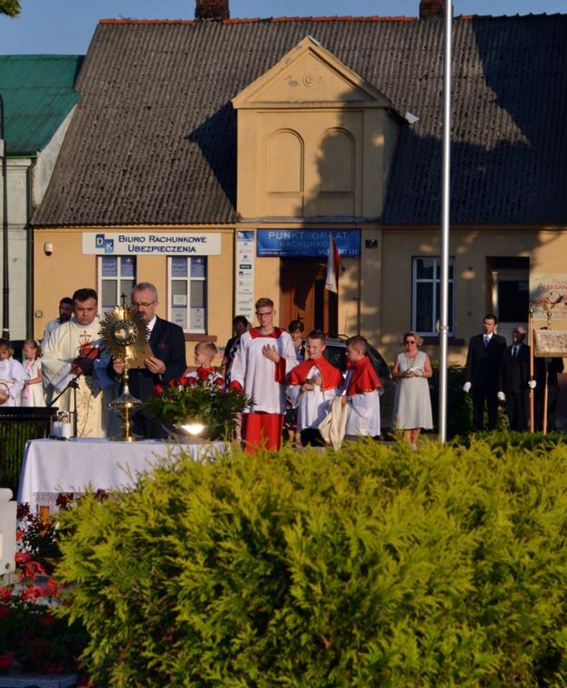 Po Mszy Świętej procesja z Najświętszym Sakramentem wyruszyła na rynek. Znajduje się tam figura Najświętszego Serca Pana Jezusa ufundowana przez mieszkańców. Została poświęcona 12. lipca 1936 roku Ks. Bpa Dymka. W czasie uroczystości poświęcenia ówczesny Burmistrz miasta Pan Franciszek  Toboła odczytał akt poświęcenia się miasta Najświętszemu Sercu Pana Jezusa. 8. czerwca A.D. 2018 roku słowa aktu wybrzmiały ponownie. Odczytał je tym razem pełniący obecnie obowiązki Burmistrza Miasta i Gminy Mikstat pan Henryk Zieliński. Obecni na mikstackim rynku usłyszeli m.in. takie słowa: „Przychodzimy więc dzisiaj, by uznać całkowite panowanie Twoje nad miastem naszem. Chcemy odtąd Twojem życiem żyć, chcemy w sobie te cnoty pielęgnować, za które już tu na ziemi pokój obiecałeś(...). Panuj więc nad naszym rozumem przez prostotę wiary, panuj też przez swą miłość nad sercami naszemi, które niech całkowicie nią zapłoną. Chcemy je w Twej żarliwej miłości utrzymać przez częste przyjmowanie Komunii św. Racz, Boskie Serce, przewodzić naszym zebraniom, błogosław nasze duchowne i doczesne przedsięwzięcia, rozpraszaj nasze troski, uświęcaj nasze pociechy i łagódź nasze cierpienia". Jak aktualne pozostają nadal słowa wypowiedziane przed ponad osiemdziesięciu laty. Po odczytaniu aktu poświęcenia się miasta Najświętszemu Sercu Pana Jezusa wybrzmiały słowa pieśni: „Najświętsze Serce Boże, poświęcamy Ci Naszą Ojczyznę i nasze miasto, Nasze rodziny i nas samych; Serce Boże, przyjdź Królestwo Twoje”. W kontekście odnowionego aktu nabrały one wyjątkowego znaczenia. Następnie przy ustawionym nieopodal figury Najświętszym Sakramencie została odmówiona Litania do Najświętszego Serca Jezusowego. Następnie Ks. Kan. Krzysztof  udzielił błogosławieństwa Najświętszym Sakramentem na cztery strony świata. Potem procesja powróciła do kościoła. Udział w uroczystościach ku czci Najświętszego Serca Pana Jezusa był publicznym wyznaniem wiary, świadectwem, dla tych, którzy nie dostrzegają jeszcze być może, bądź nie odkryli bogactwa miłości i wielości łask spływających na ludzkość z przebitego Serca Pana Jezusa.