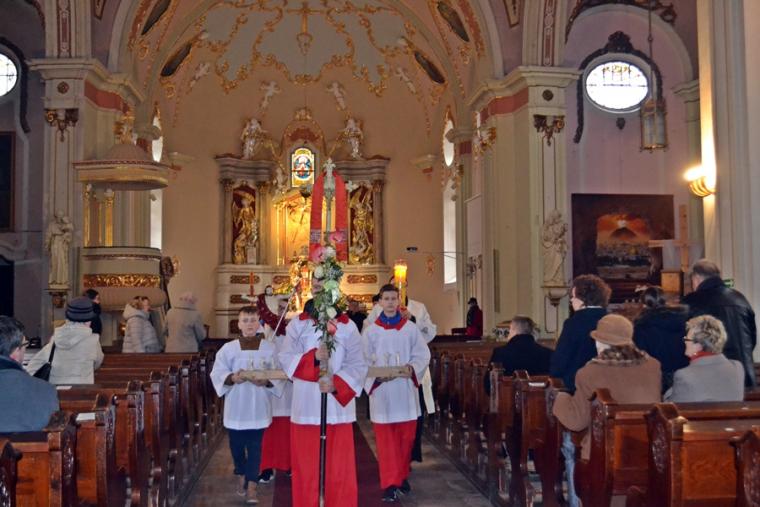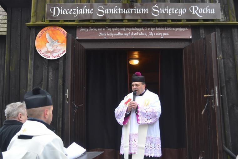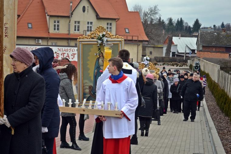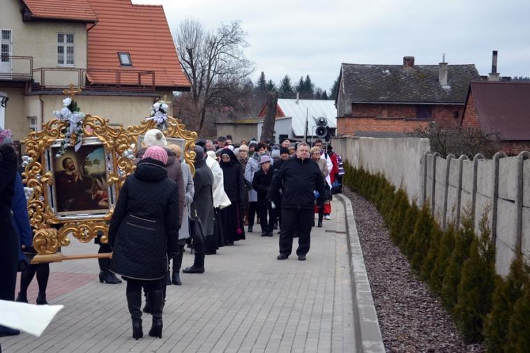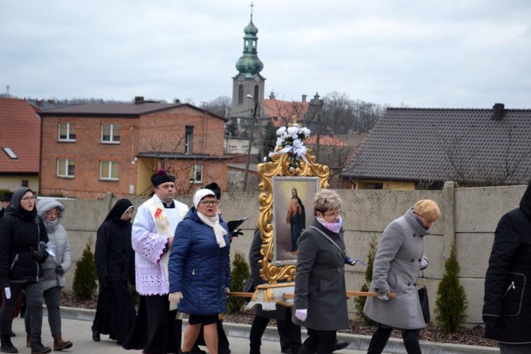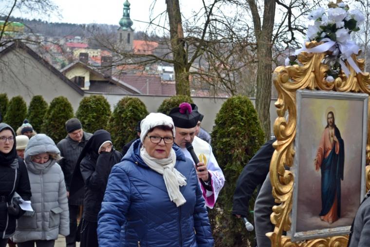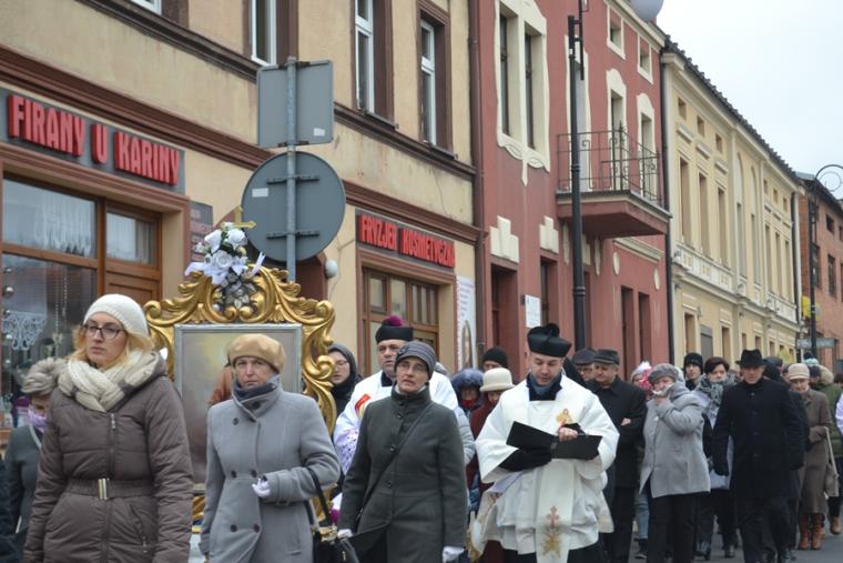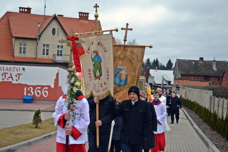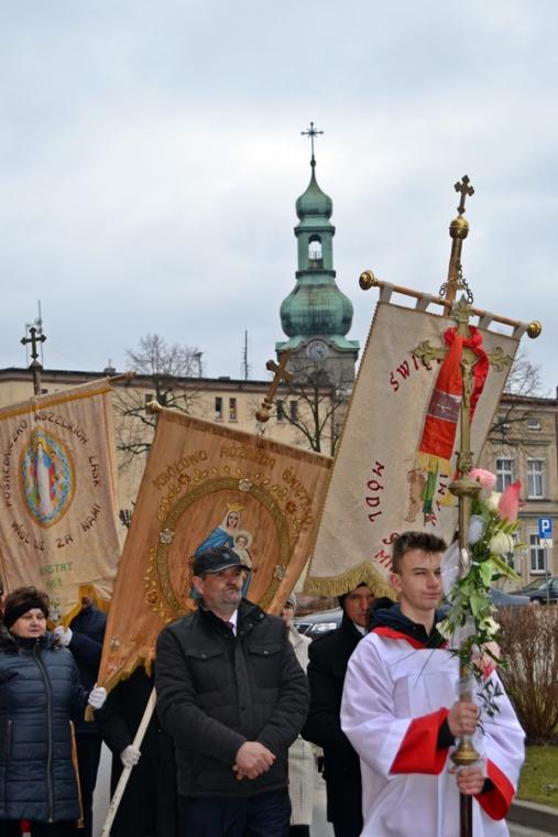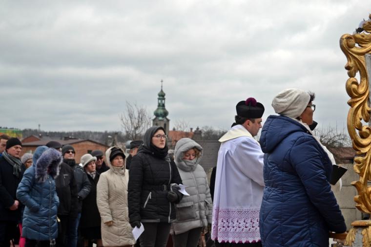 Po odprawieniu Nowenny do Miłosierdzia Bożego  z krzyżem, paschałem, figurą Chrystusa zmartwychwstałego, feretronami i sztandarami,  wyszliśmy na ulice naszego miasteczka. W naszą drogę do Emaus wyruszyliśmy z naszymi duszpasterzami: ks. kan. Krzysztofem Ordzinikiem, ks. Krzysztofem Lipińskim i ks. Mateuszem  Puchałą. Ks. Krzysztof Lipiński niósł zapalony paschał, natomiast ks. kan. Krzysztof wraz z ks. Mateuszem prowadzili nabożeństwo Drogi Światła. Pierwsze spotkanie ze zmartwychwstałym Panem rozważaliśmy przed kościołem pw. Świętej Trójcy. Warto dodać, że wspólnota parafialna przygotowuje się do obchodów 100-lecia jego konsekracji. Ostatnie, przy Diecezjalnym Sanktuarium Świętego Rocha. Sanktuarium położone jest w centralnym punkcie cmentarza. Tu wielu uczestników procesji ma groby swoich bliskich. Dla nich przesłanie “Pan zmartwychwstał” nabiera tu szczególnego znaczenia. Daje nadzieję na spotkanie z tymi, którzy poprzedzili nas w  pielgrzymce do Ojczyzny niebieskiej.