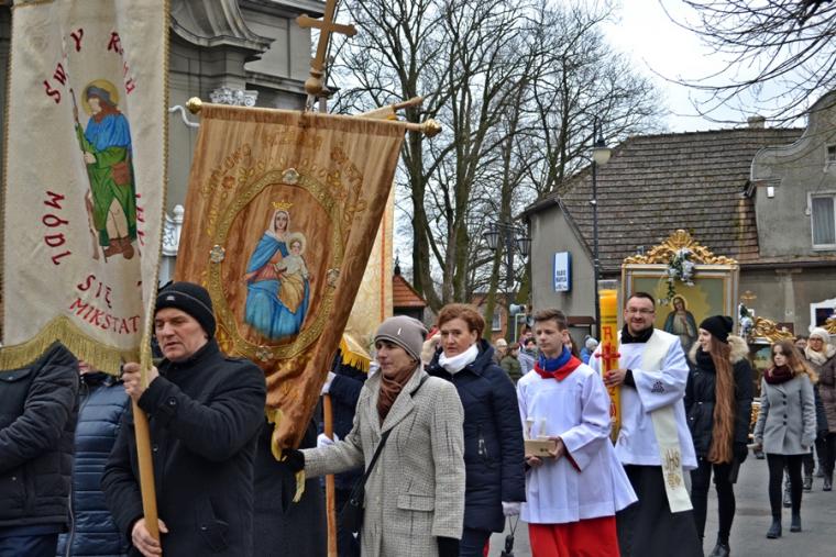 Przemierzając ulicami miasta za krzyżem i  figurą Zmartwychwstałego Pana dzieliliśmy się z napotykanymi ludźmi radosną nowiną; Jezu żyje! Pan zmartwychwstał, prawdziwie zmartwychwstał. Za nami kolejna procesja do Emaus, tradycyjna w naszej mikstackiej wspólnocie, ale w tym roku wzbogacona o nowy element: nabożeństwo Drogi Światła. Zapewne pomogło nam ono w większym skupieniu przeżyć naszą mikstacką drogę do Emaus. A może tak jak uczniowie zmierzający do Emaus doświadczyliśmy podczas niej spotkania ze zmartwychwstałym Panem i poznaliśmy Go przy łamaniu chleba. O godz. 16:00 sprawowana była Eucharystia.   Pan przygotował dla nas ucztę. Wielu skorzystało z zaproszenia i przyjęło Jezusa do swego serca…