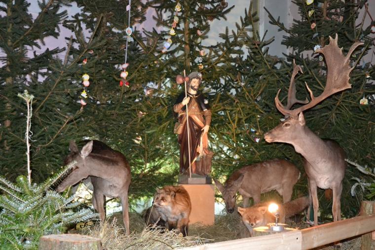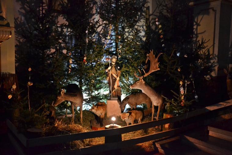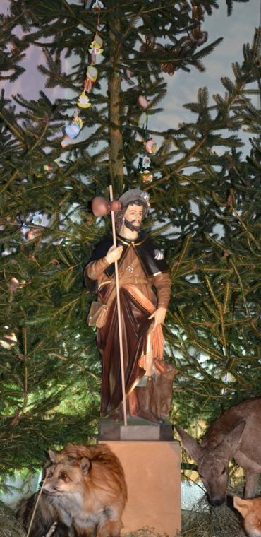 Mikstat: W tym roku w mikstackim Betlejem znalazła się figura św. Rocha patrona przyzywanego przez miliony ludzi w czasach doświadczania epidemii koronawirusa.