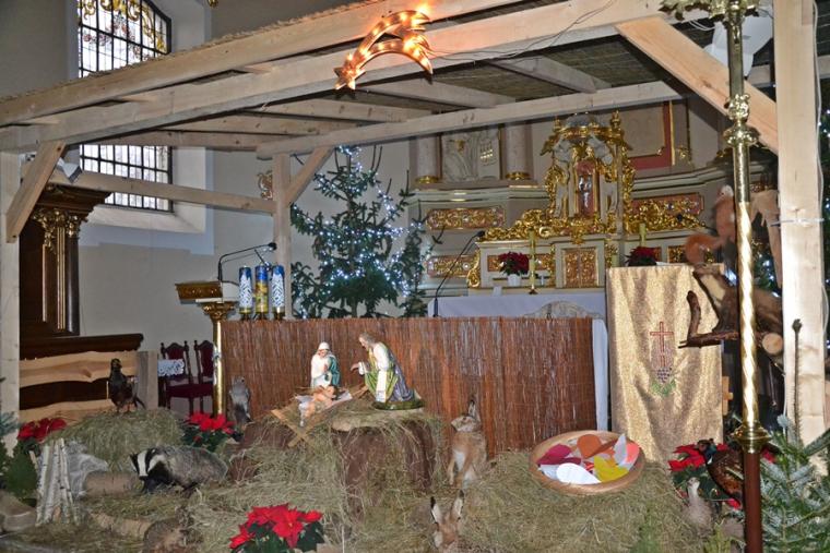 Mimo panującej pandemii jest oczywiście szopka betlejemska w mikstackim kościele....