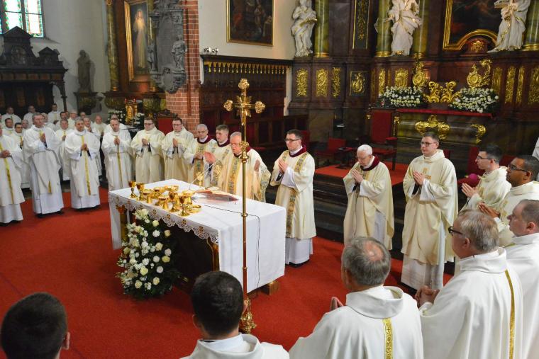 Po homilii wszyscy zgromadzeni modlili się litanią do Wszystkich Świętych, wypraszając dla przyszłych księży potrzebne łaski. Po litanii nastąpił obrzęd święceń. Po święceniach neoprezbiterzy po raz pierwszy stanęli przy ołtarzu, aby koncelebrować Eucharystię. W niedzielę w parafiach rodzinnych odprawią Msze prymicyjne, a już wkrótce Biskup legnicki pośle ich do wyznaczonych parafii.