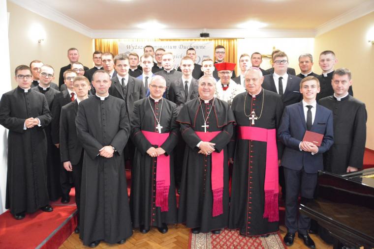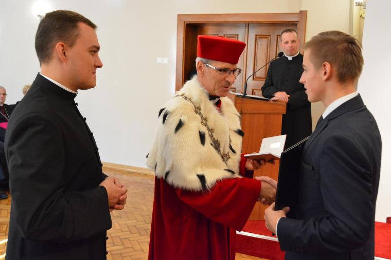 W szczególny sposób rektor seminarium ks. Piotr Kot powitał czterech kleryków I roku studiów, którym towarzyszyli rodzice i krewni. Wyraził radość z tego, że zdecydowali się rozpocząć naukę i formację seminaryjną. Na początku uroczystości nowi alumni złożyli przyrzeczenie, w którym zobowiązali się do pilnej nauki i osobistego zaangażowania się w formację ku kapłaństwu. Z rąk rektora PWT ks. Włodzimierza Wołyńca otrzymali indeksy studenckie. Natomiast biskup legnicki Zbigniew Kiernikowski wręczył nagrody klerykom, którzy w ubiegłym roku akademickim osiągnęli najlepsze wyniki naukowe.