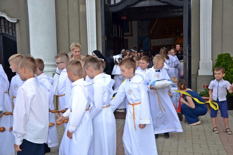 W procesji z darami dzieci przyniosły chleb wodę i wino oraz hostie. Po zakończeniu Mszy Świętej został wystawiony Najświętszy Sakrament i odmówiona Litania do Trójcy Przenajświętszej, a następnie wyruszyliśmy z procesją wokoło kościoła. Po błogosławieństwie udzielonym Najświętszym Sakramentem licznie zebranym w mikstackim wieczerniku wiernym wybrzmiała pieśń „Boże coś Polskę…”.