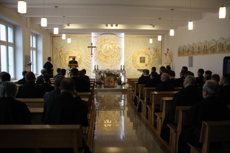 W pallotyńskim seminarium, w imieniu całej wspólnoty, ks. Mirosław Mejzner SAC, rektor, powitał Eminencję. Dalej kard. Sarah poprowadził krótką modlitwę wspólnotową w języku łacińskim, po czym wygłosił kilkunastominutową konferencję. Hierarcha zaznaczył, że Panem seminarium i pierwszym Mistrzem jest Jezus Chrystus. Powiedział m.in.: